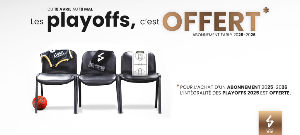 Chers supporters, La saison régulière touche à sa fin et les Playoffs approchent à grands pas avec la promesse de continuer d’écrire l’histoire du basket français !Cette année, LDLC ASVEL vous propose une offre inédite pensée pour vous, passionnés de basket et d’émotions. Du 18 avril au 18 mai, pour toute souscription à un abonnement 2025-2026, nous vous offrons l’intégralité des […]